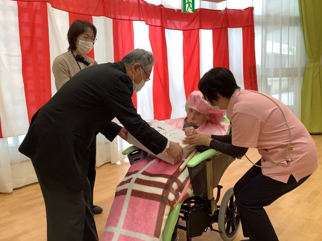 鶴岡市より記念品が贈られてきましたので施設長からの贈呈式を行いました!