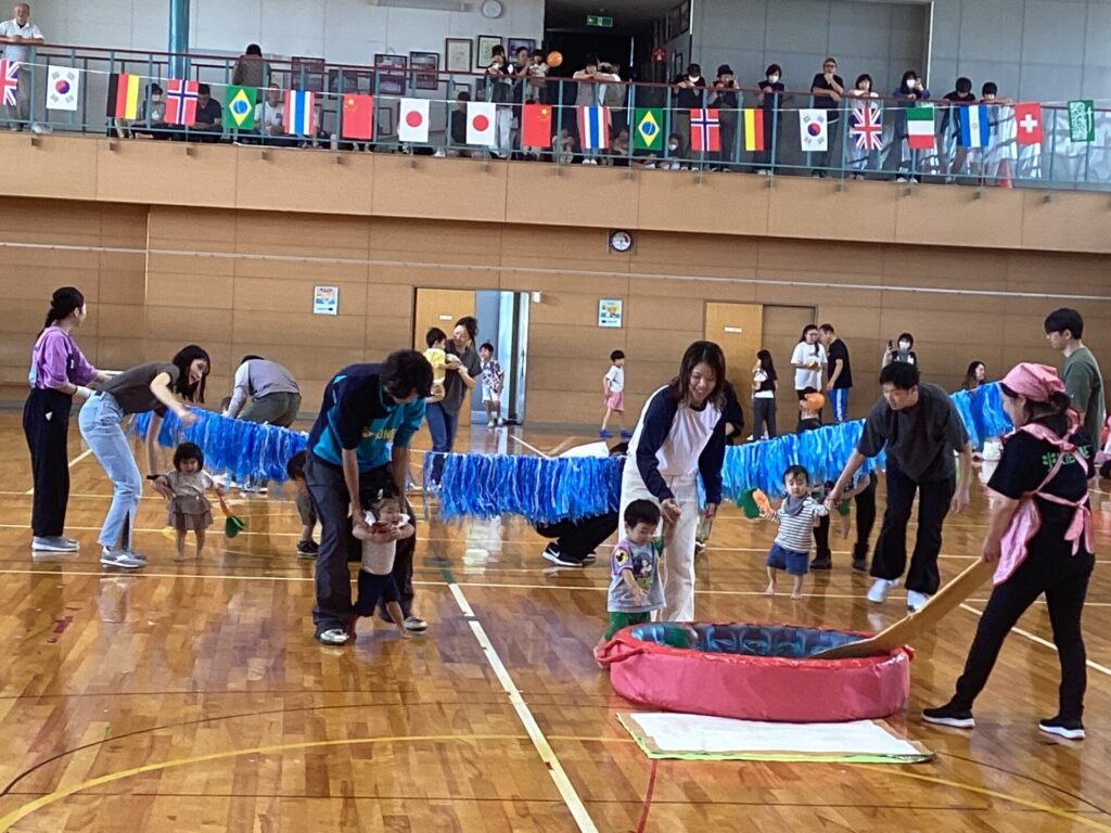 0歳児(いちごぐみ)、1歳児(ももぐみ)、2歳児(さくらんぼぐみ)は親子で『おいしいカレーできるかな?』の競技を楽しみました。自分の好きなお野菜を選んで、お鍋にお届け♪お野菜たっぷりのおいしいカレーライスができあがりましたよ。