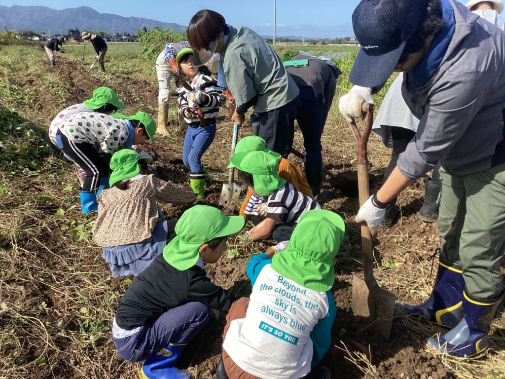 今年も畑のお手伝いをしていただいた寒河江さん、いも堀りのお手伝いいただいた保育パパ・ママのお家の皆さん、本当にありがとうございました。